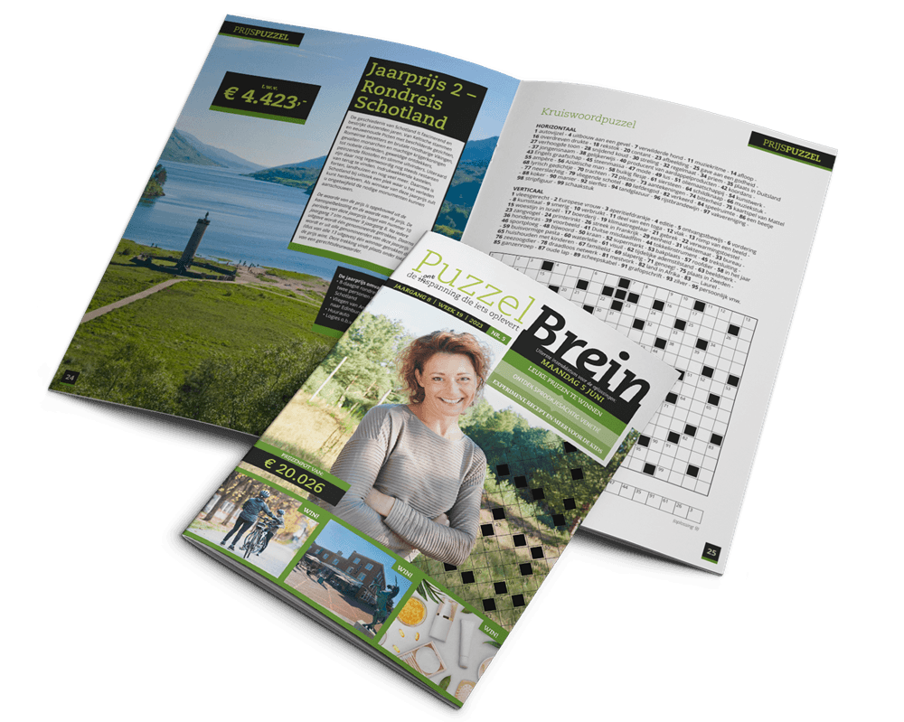 Met iedere puzzel maak je kans op mooie prijzen. De totale prijzenpot is ruim € 20.000,-. PuzzelBrein verschijnt elke vier weken en wordt exclusief verspreid onder abonnees.