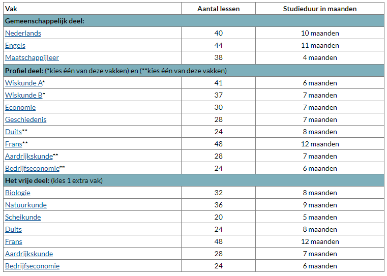 • Duits of Frans of Aardrijkskunde of Bedrijfseconomie